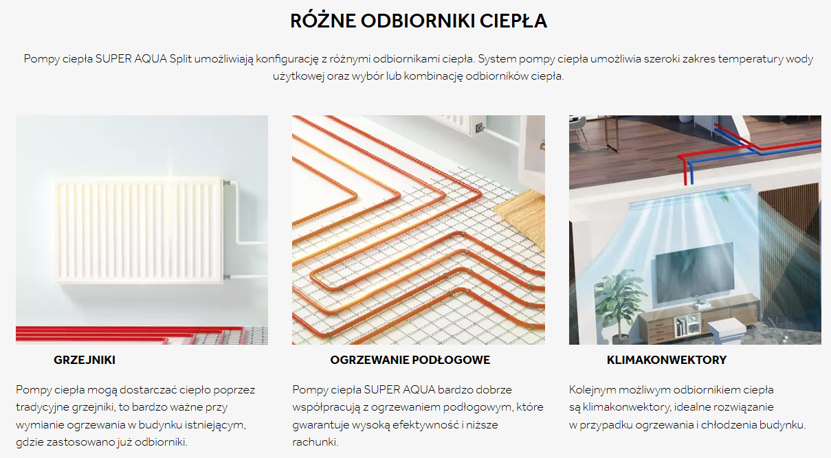 Pompa ciepła to najbardziej efektywne i ekologiczne rozwiązanie do ogrzewania budynków i przygotowywania ciepłej wody użytkowej. Rozwiązanie typu Split posiadające wiele możliwości rozmieszczenia jednostki wewnętrznej i zewnętrznej. Praktyczne rozwiązanie gwarantujące niczym nie zakłóconą pracę nawet w temperaturze zewnętrznej -25°. Urządzenie z łatwością współpracuje z systemem BMS – centralny system zarządzania urządzeniami w domu.